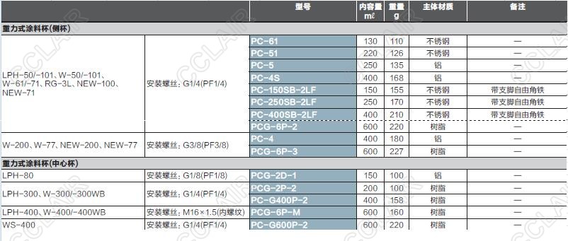 潤色和少量涂裝時,使用重力式的側(cè)杯(130~600ml),中心料杯(150~600ml)