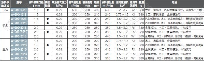 W-200-122P,W-200-151S,W-200-152S,W-200-182S,W-200-201G,W-200-251G,W-200大型噴槍