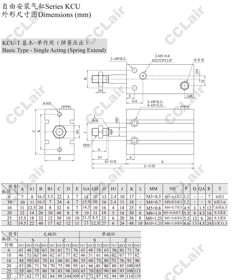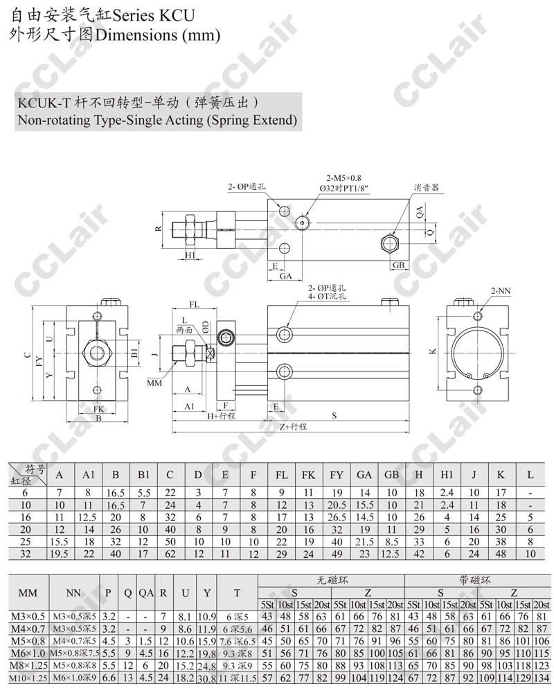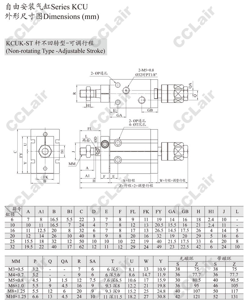 KCUK,KCUW,KCUKW,KCUK20-60,KCUKW16-50,KCUW20-5,KCUKW20-40,KCUW16-10,ARK自由安裝氣缸