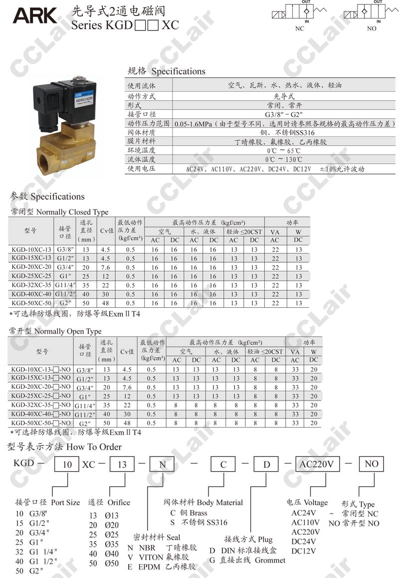 型號: KGD-10XC-13,KGD-15XC-13,KGD-20XC-20,KGD-25XC-25,KGD-32XC-35,KGD-40XC-40,KGD-50XC-50,ARK先導(dǎo)式2通電磁閥