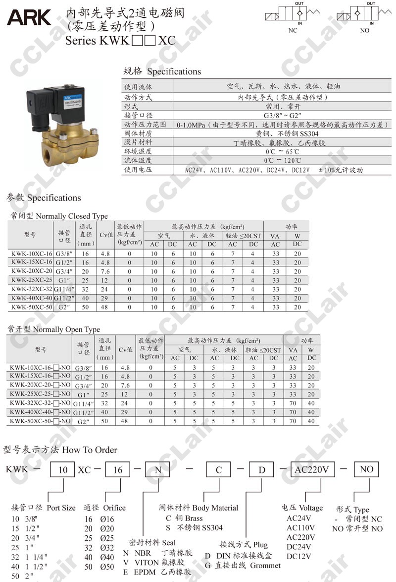 KWK-10XC,KWK-15XC,KWK-20XC,KWK-25XC,KWK-32XC,KWK-40XC,KWK-50XC,KWK-50XC-50,ARK先導(dǎo)式2通電磁閥