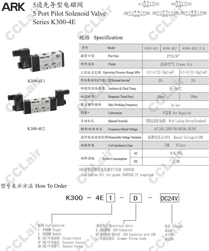 詳細信息 K300-4E1,K300-4E2,K300-4E2C,K300-4E2P,K300-4E2R,ARK5通先導型電磁閥