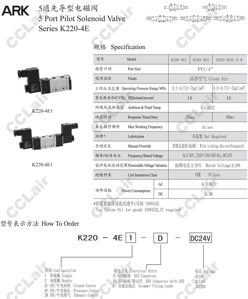 詳細(xì)信息 K220-4E1,K220-4E2,K220-4E2C,K220-4E2P,K220-4E2R,ARK5通先導(dǎo)型電磁閥