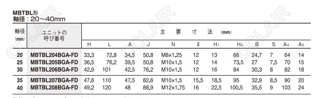 MBTBL204BGA-FD,MBTBL205C-BGA-FD,MBTBL207E-BGA-FD,MBTBL200GA-FD,軸承