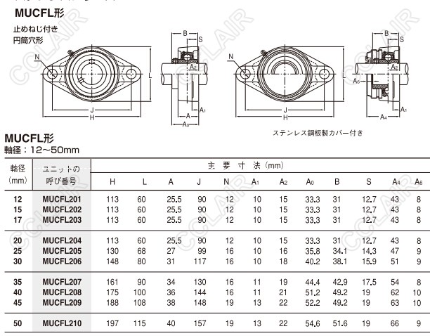 MUCFL201,MUCFL202C,MUCFL203E,MUCFL210E,MUCF,軸承