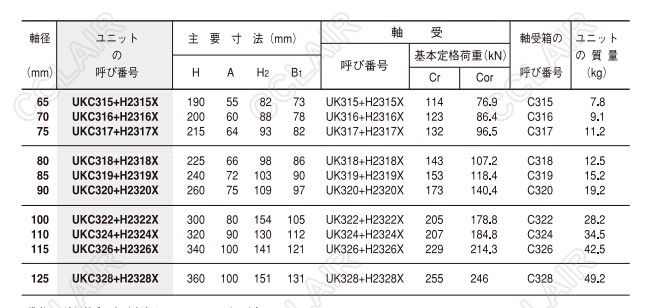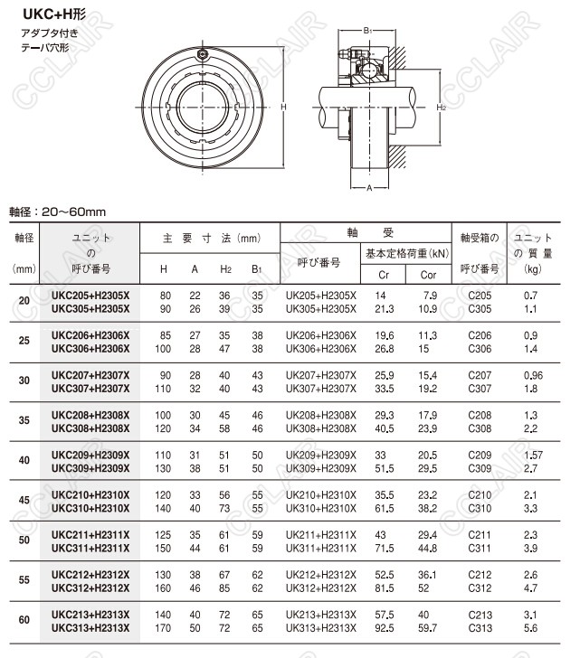 UKC205+H2305X,UKC305+H2305X,UKC206+H2306X,UKC306+H2306X,UKC207+H2307X,UKC+H,軸承
