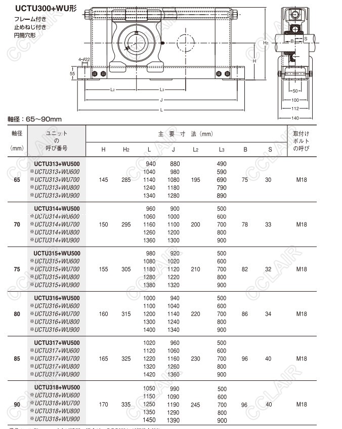 CTU313+WU500,UCTU313+WU600,UCTU313+WU700,UCTU313+WU800,UCTU300+WU,軸承
