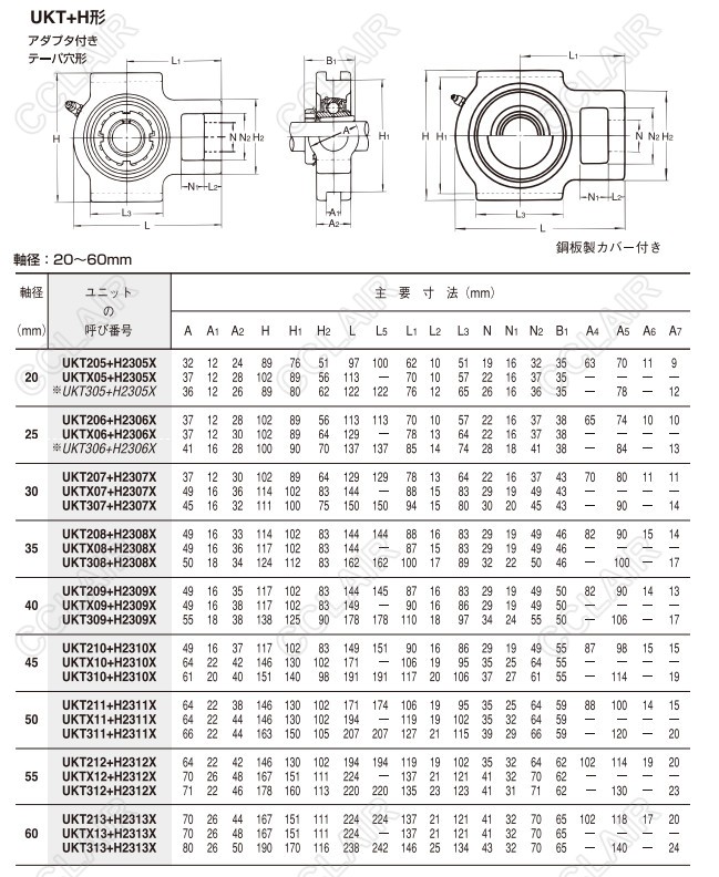 UKT205+H2305X,UKT206C+H2306X,UKT207E+H2307X,CUKT208C+H2308X,UKT+H,軸承