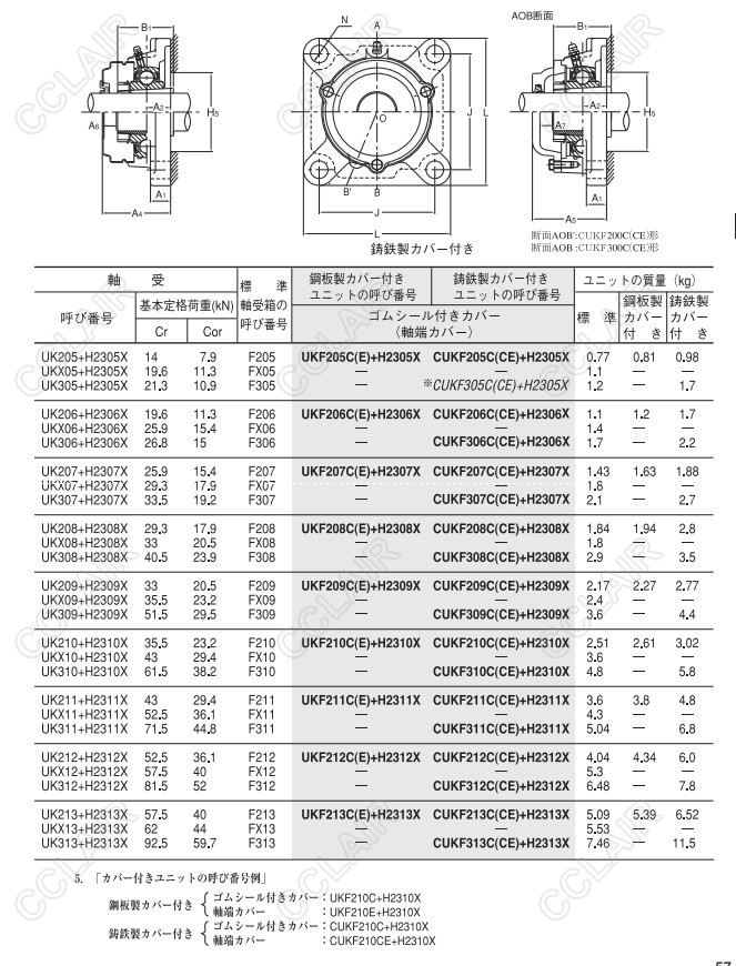 UKF205+H2305X,UKF206C+H2306X,UKF207E+H2307X,CUKF308CE+H2308X,UKF+H,軸承