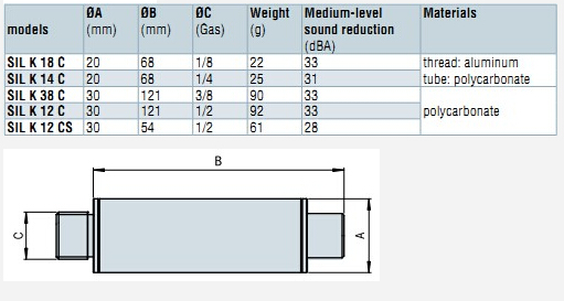 詳細(xì)信息 SILK18C,SILK14C,SILK38C,SILK12C,SILK12CS,COVAL直通式消音器 主要參數(shù)見(jiàn)下表: