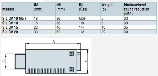 詳細信息 SILGV10M5F,SILGV10,SILGV15,SILGV20,COVAL擴散式消音器 主要參數(shù)見下表:
