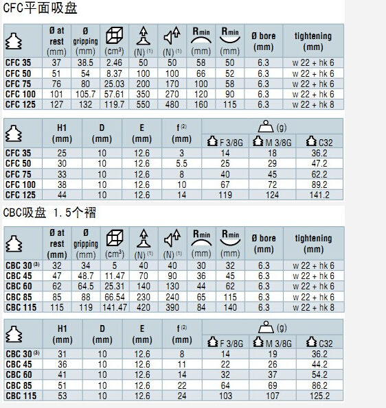 詳細(xì)信息 CFC35,CFC50,CFC75,CFC100,CFC125,CBC30,CBC45,CBC60,CBC85,CBC115,COVAL吸盤高性能吸盤