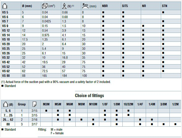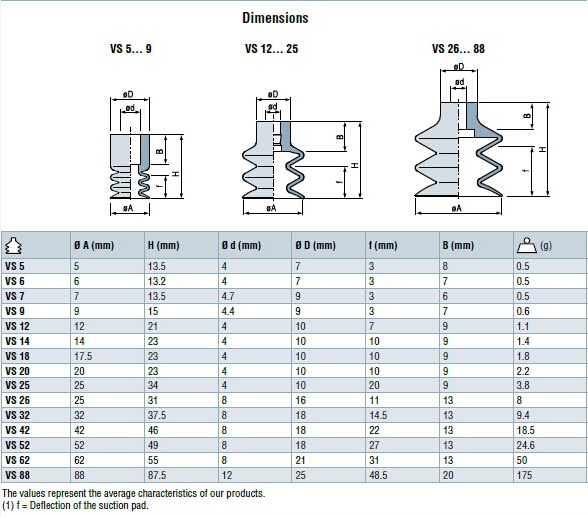 詳細信息 VS5,VS6,VS7,VS9,VS12,VS14,VS18,VS20,VS25,VS26,VS32,VS42,VS52,VS62,VS88,COVAL波紋管吸盤