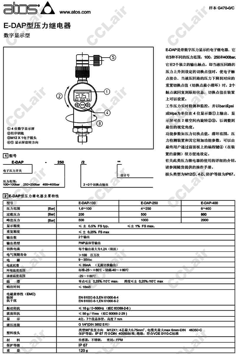 詳細(xì)信息 E-DAP-100/2,E-DAP-250/2,E-DAP-400/2,阿托斯ATOS壓力繼電器