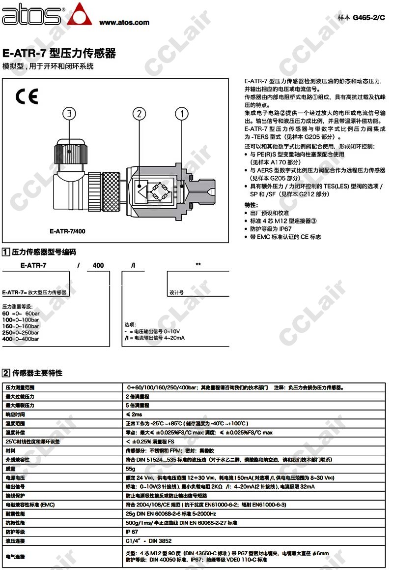 E-ATR-7/60,E-ATR-7/100,E-ATR-7/160,E-ATR-7/250,E-ATR-7/400,阿托斯ATOS壓力傳感器