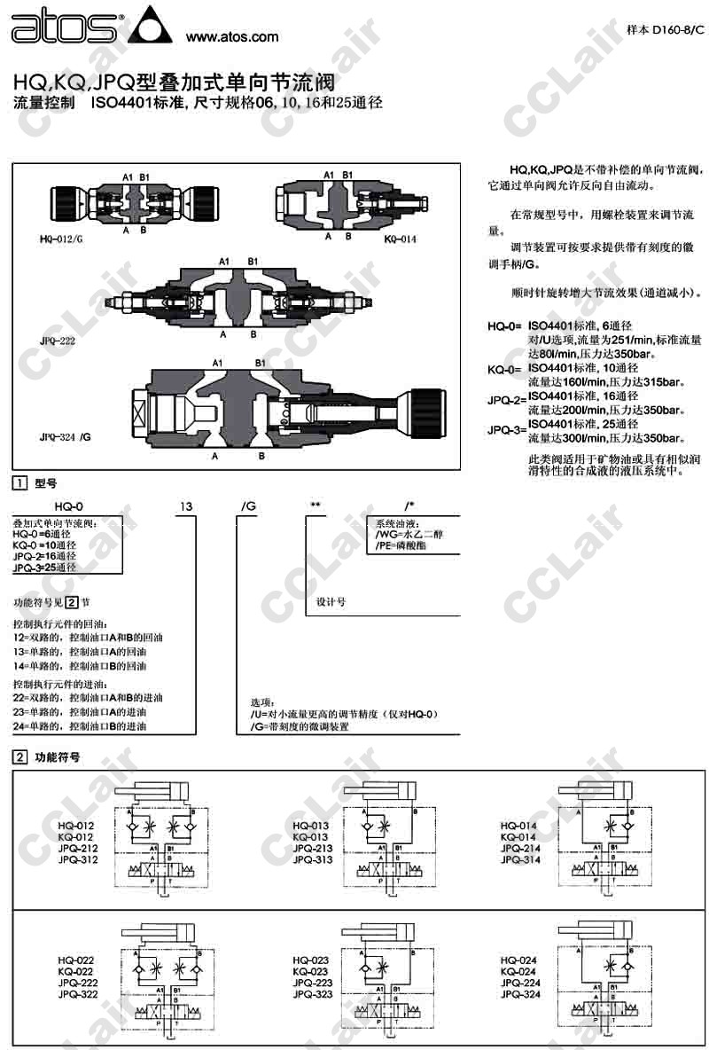KQ-012/G,KQ-013/G,KQ-014/G,KQ-022/G,KQ-023/G,KQ-024/G,阿托斯ATOS疊加式單向節(jié)流閥