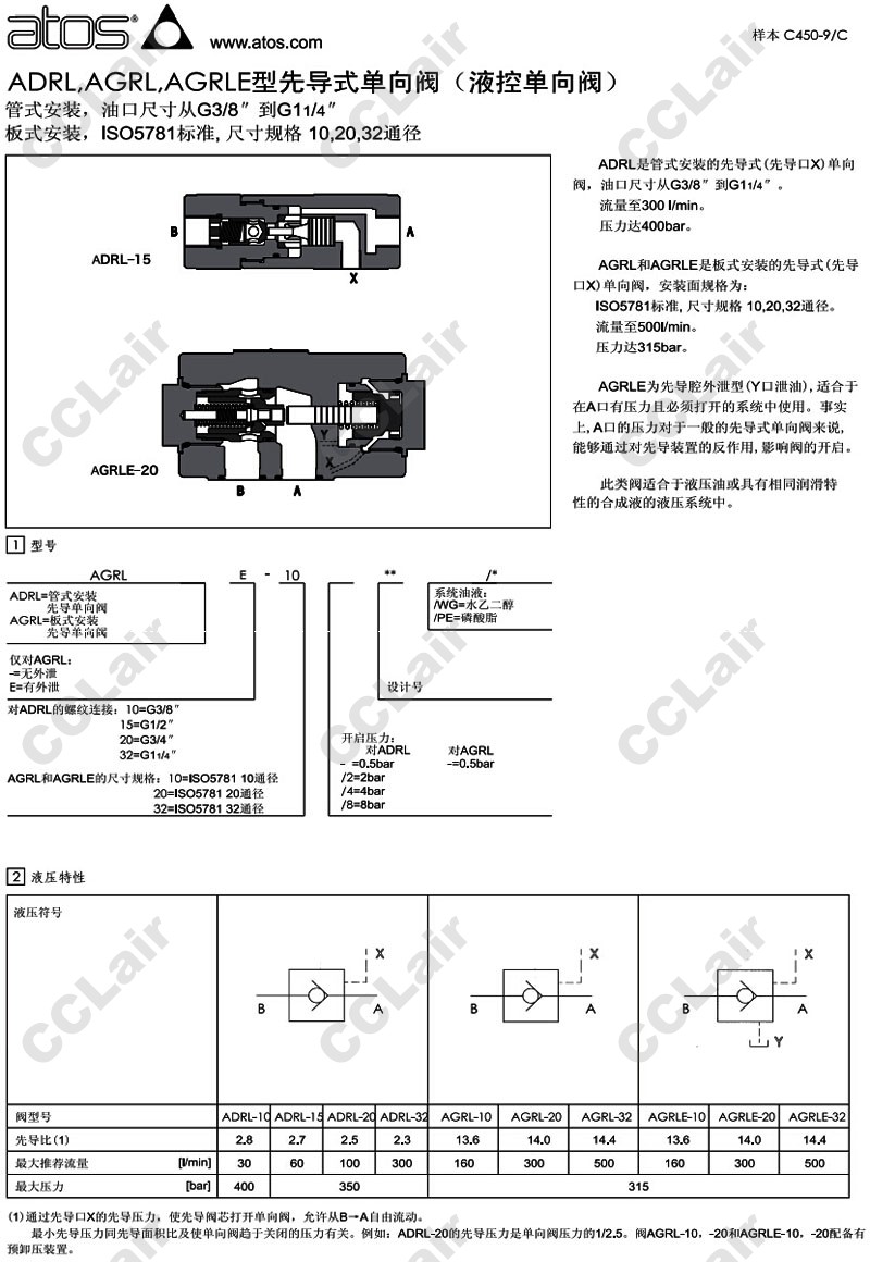 AGRL-10,AGRL-20,AGRL-32,AGRL-10/2,AGRL-32/4,AGRL-10/4,AGRL-20/2,阿托斯ATOS先導(dǎo)式單向閥