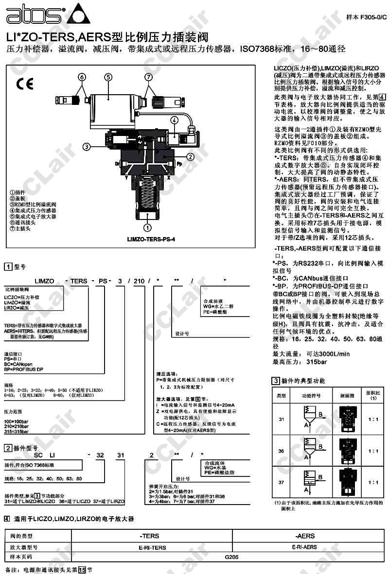 LIRZO-TERS,LIRZO-AERS,LIRZO-AERS-PS-4/315,LIRZO-TERS-BP-2/210,阿托斯ATOS比例壓力插裝閥