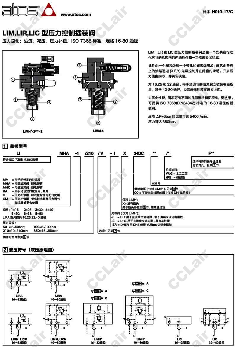 LIMHC-8/350/P,LIMHC-4/50/VF,阿托斯ATOS LIMHC-5/50/VF,LIMHC-6/50/VF,LIMHC-8/50/VF,LIMHC-4/100/VF,