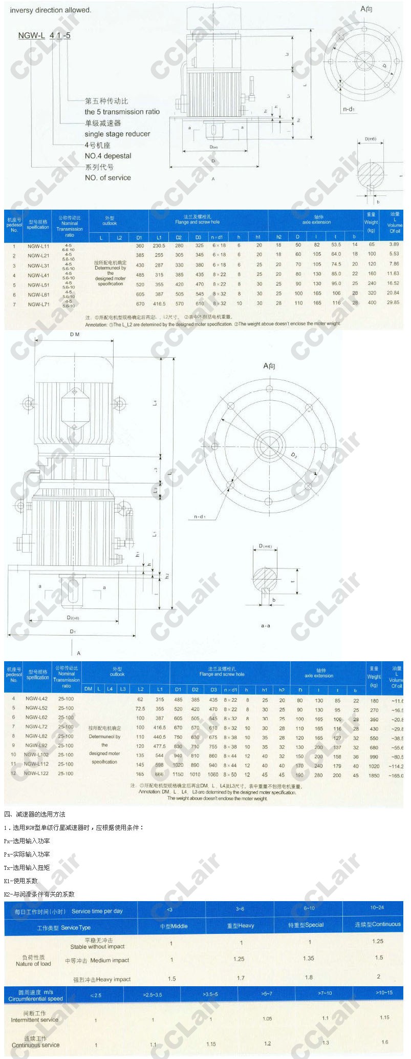 d、配用電機功率為減速器入軸功率的1.1-1.2倍時,應以單級選用方法按輸出許用扭矩選用.