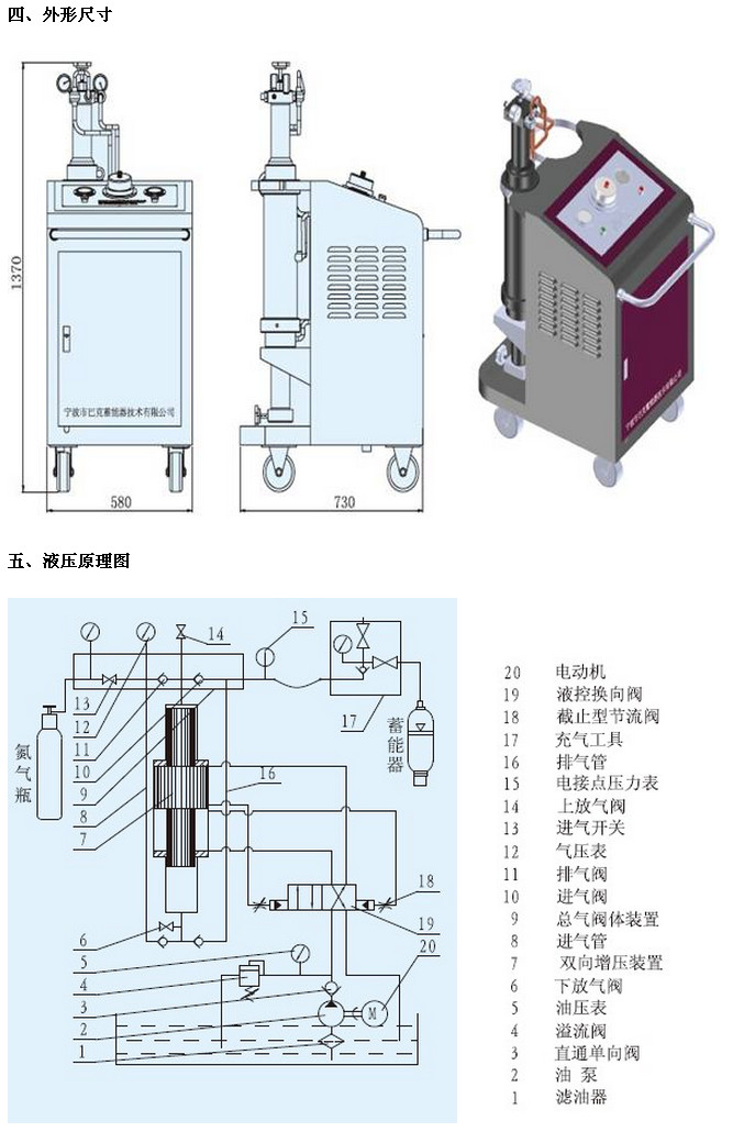 本型充氮車由液壓裝置、氣路裝置和電氣裝置等組成,當(dāng)壓力流體通過換向閥進(jìn)入增壓器時(shí),推動活塞作向上(下)運(yùn)動,使進(jìn)入到上(下)增壓器的氮?dú)庠鰤?,且?jīng)單向閥充入蓄能器(或高壓容器)內(nèi),活塞如此上下往復(fù)運(yùn)動,使氮?dú)庠鰤旱剿枰墓ぷ鲏毫Α?/span>