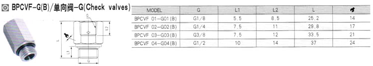 詳細信息 BPCVF01-G01(B),BPCVF02-G02(B),BPCVF03-G03(B),BPCVF04-G04(B),單向閥