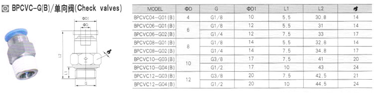 BPCVC04-G01(B),BPCVC06-G01(B),BPCVC08-G01(B),BPCVC10-G03(B),BPCVC12-G03(B),單向閥