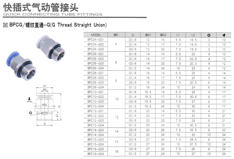 BPC04-G01,BPC08-G01,BPC10-G01,BPC12-G01,BPC15-G03,BPC16-G04,快插式氣動(dòng)管接頭