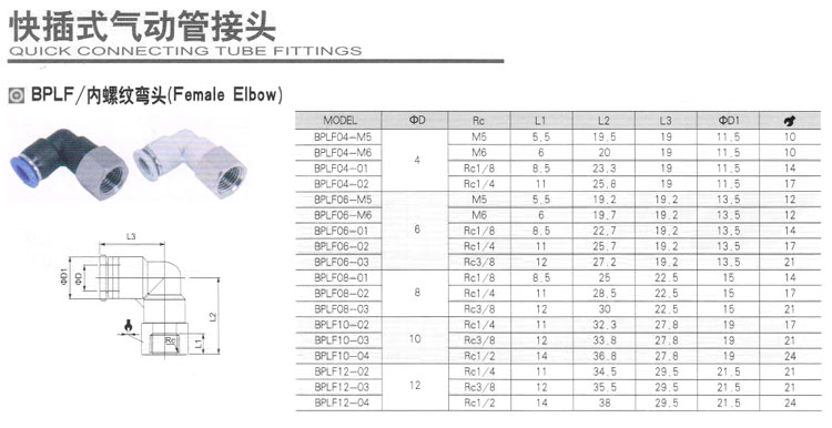 BPLF04-M5,BPLF06-M5,BPLF08-01,BPLF10-02,BPLF12-02,BPLF04-M6,BPLF06-M6,快插式氣動(dòng)管接頭