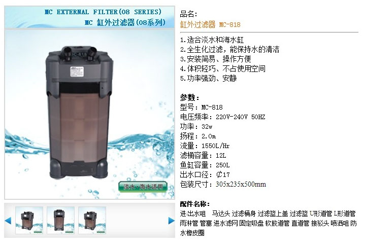 產(chǎn)品: 瀏覽次數(shù):557MC-818,缸外過濾器