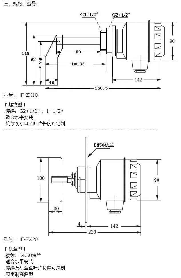 詳細(xì)信息 HF-ZX10,HF-ZX20,HF-ZX30,HF-ZX40,HF-ZX50,阻旋式料位開關(guān)