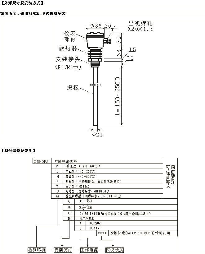 CTS-DFJ-P-A-A,CTS-DFJ-E-A-A,CTS-DFJ-H-A-A,CTS-DFJ-F-A-D,CTS-DFJ-Y-A-D,射頻電容式物位開關(guān)