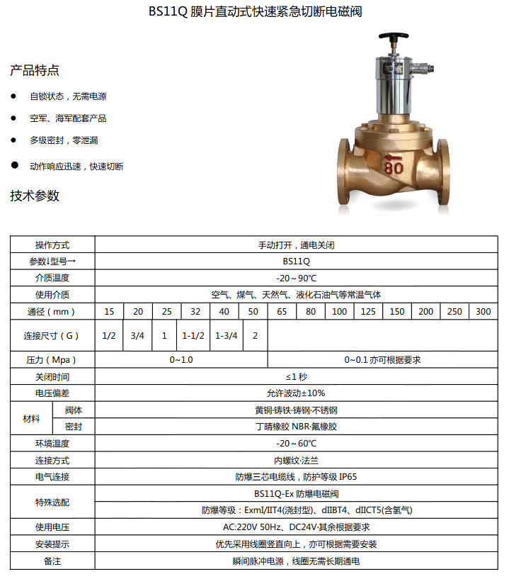 BS11Q-DN15,BS11Q-DN20,BS11Q-DN25,BS11Q-DN32,BS11Q-DN40,緊急切斷電磁閥