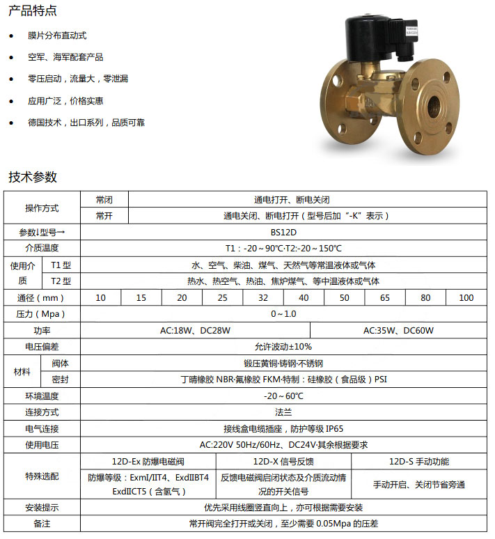 詳細信息 BS12D-DN15,BS12D-DN20,BS12D-DN25,BS12D-DN32,通用法蘭電磁閥