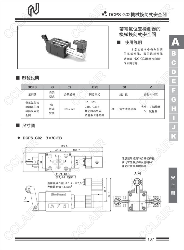 Northman北部精機,機械換向式安全閥DCPS-G02-B2-30,DCPS-G02-B2-30V,DCPS-G02-B2S-30,DCPS-G02-B2S-30V,DCPS-G02-C2B-30,DCPS-G02-C2B-30V,DCPS-G02-C2BS-30,DCPS-G02-C2BS-30V