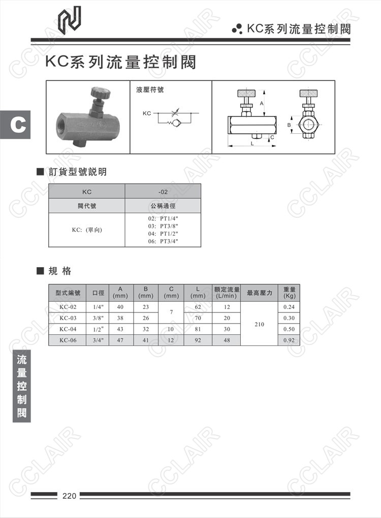 詳細(xì)信息 Northman臺(tái)灣北部精機(jī),流量控制閥KC-02,KC-03,KC-04,KC-06