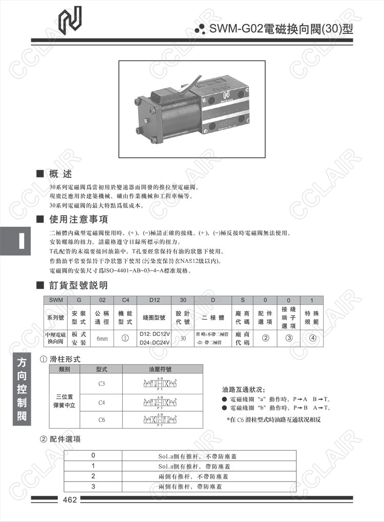 Northman臺灣北部精機(jī),30型電磁換向閥SWM-G02-C3-D12-30-S001,SWM-G02-C3-D12-30-S011,SWM-G02-C3-D12-30-D-S001,SWM-G02-C3-D12-30-D-S011,SWM-G02-C3-D24-30-D-S30-D1,SWM-G02-C3-D24-30-D-S311,SWM-G02-C6-D24-30-D-S30-D1