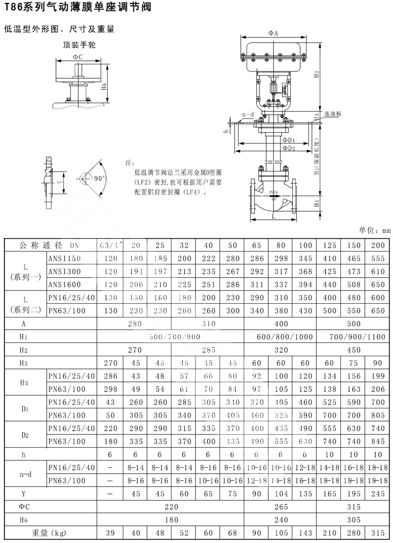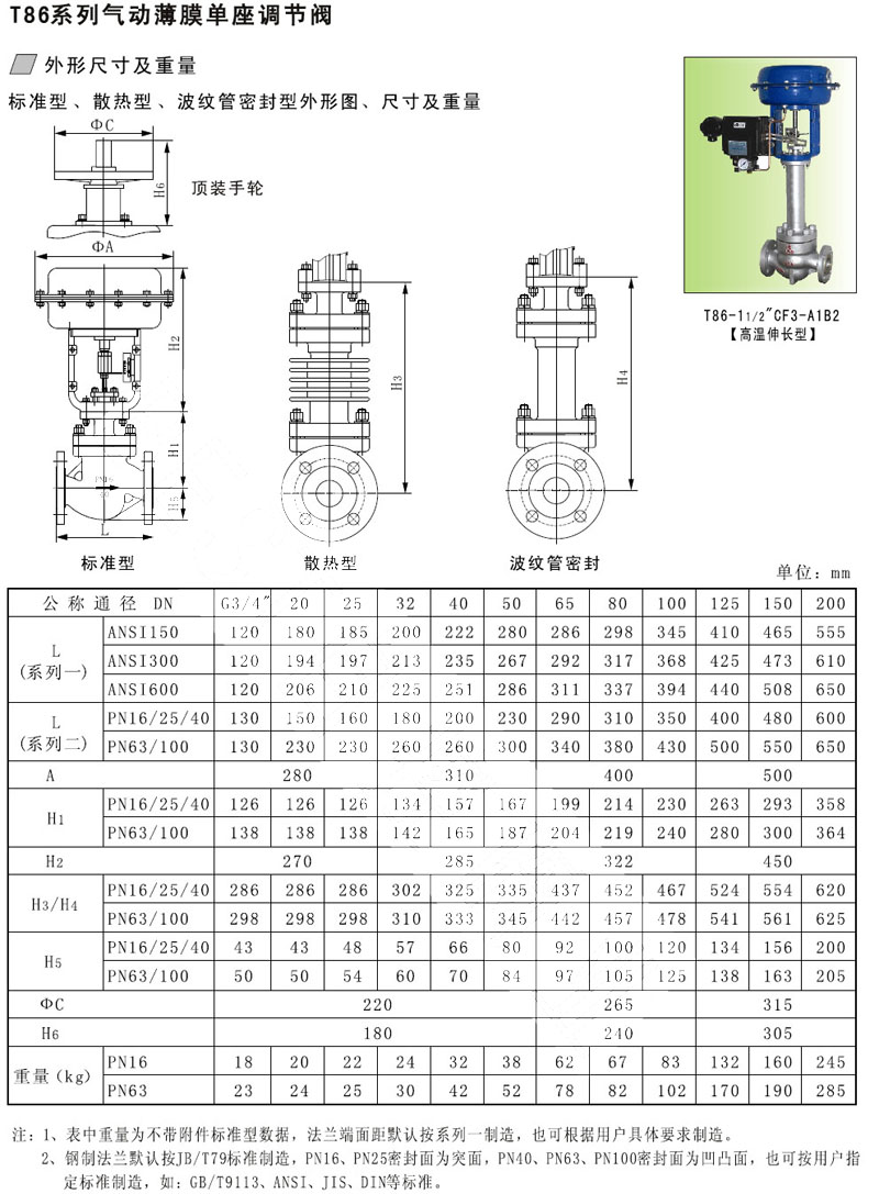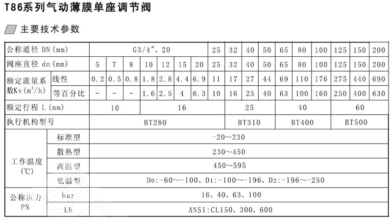 T86-16C,T86-16B,T86-25C,T86-40B,T86-63C,T86-100B,氣動薄膜單座調(diào)節(jié)閥