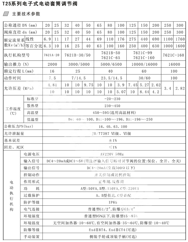 T25-16C-DN50,T25-40C-DN32,T25-63C-DN40,T25-100C-DN20,電子式電動(dòng)套筒調(diào)節(jié)閥