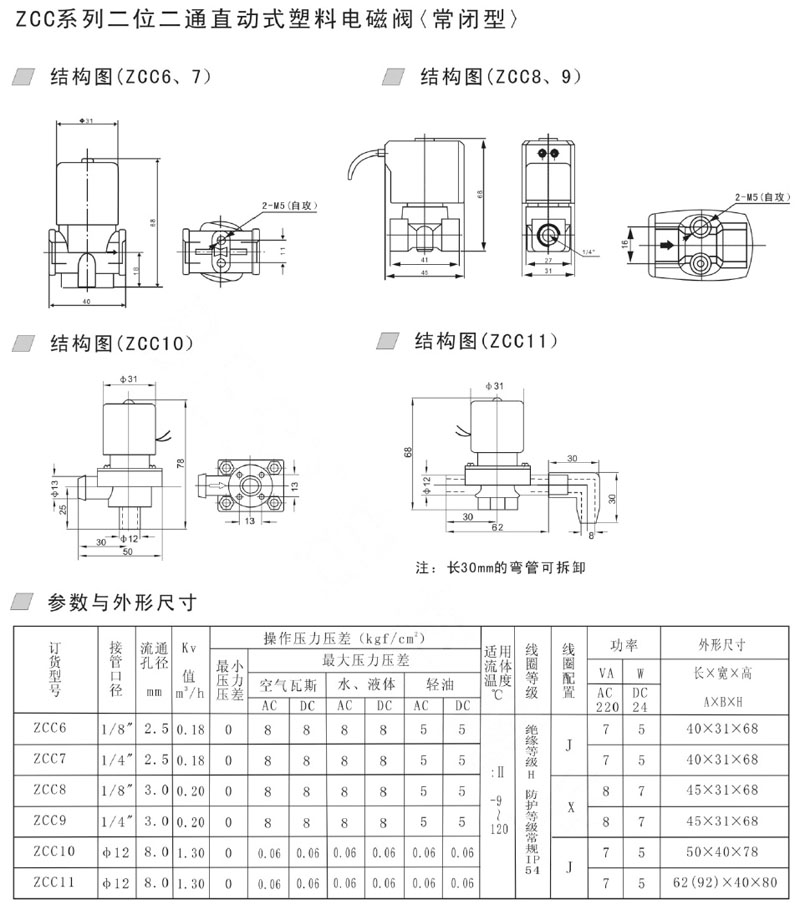 ZCC6,ZCC7,ZCC8,ZCC9,ZCC10,ZCC11,直動(dòng)活塞式塑料電磁閥