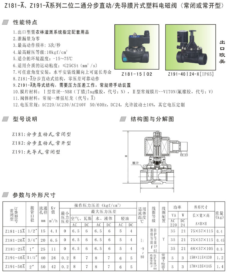 Z181-15,Z181-20,Z181-25,Z181-40,Z181-50,先導(dǎo)膜片式塑料電磁閥