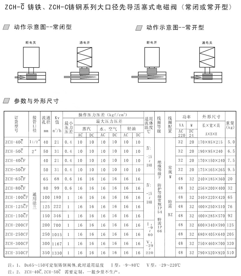 ZCH-40,ZCH-50,ZCH-65,ZCH-80,ZCH-100,ZCH-125,ZCH-150,先導(dǎo)活塞式電磁閥
