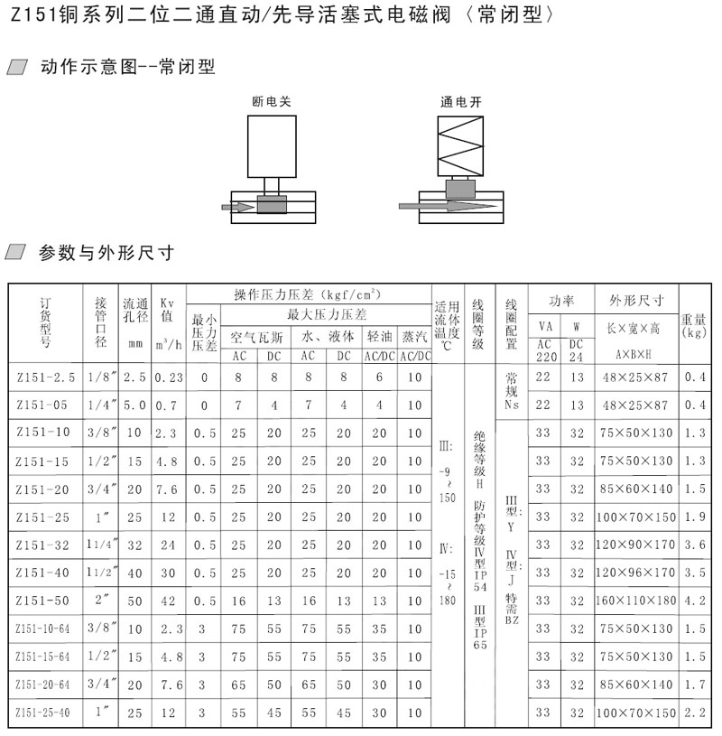 Z151-2.5,Z151-05,Z151-10,Z151-15,Z151-20,Z151-10-64,先導(dǎo)活塞式電磁閥
