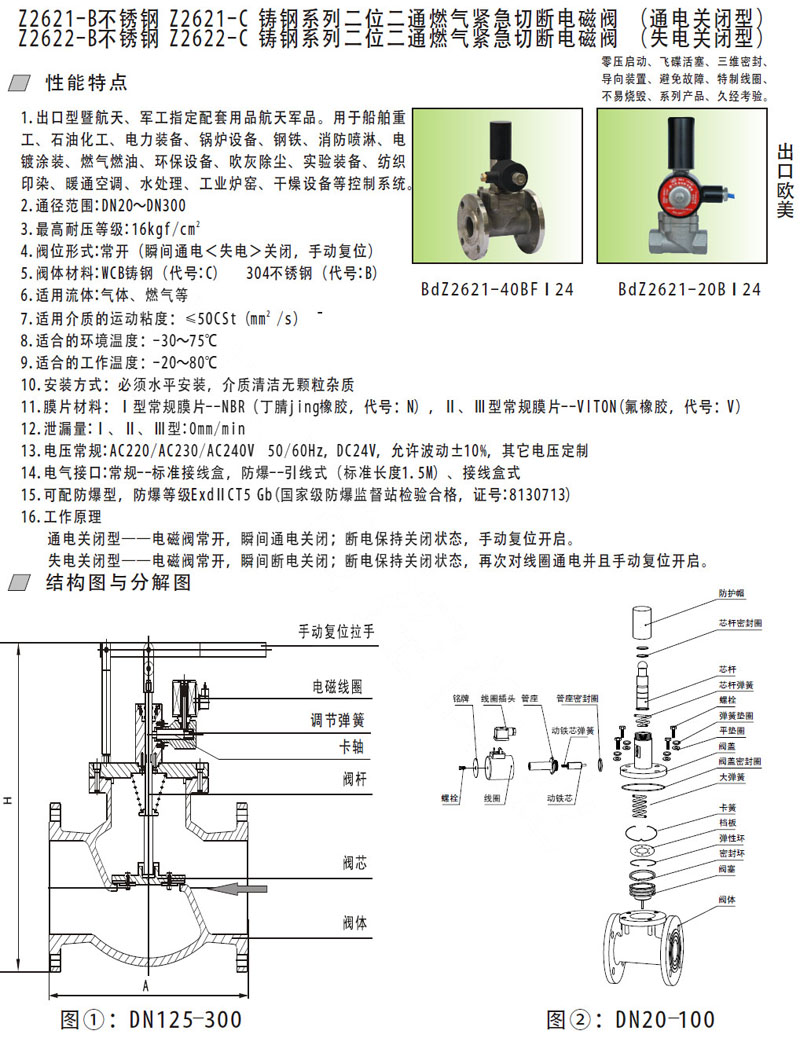Z2621-20B,Z2621-32BC,Z2621-40BF,Z2621-50BF,Z2621-65BFC,防爆燃?xì)饩o急切斷閥