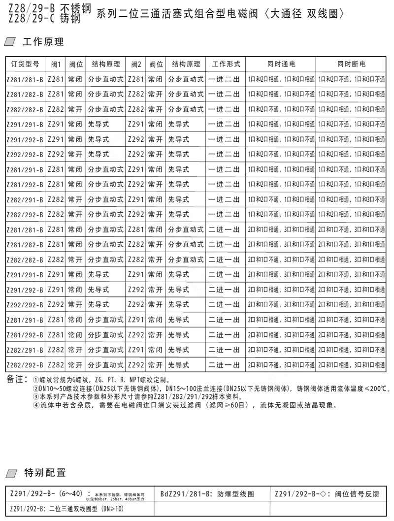 Z281/281-B,Z282/282-B,Z291/291-B,Z281/292-B,Z292/292-B,二位三通電磁閥