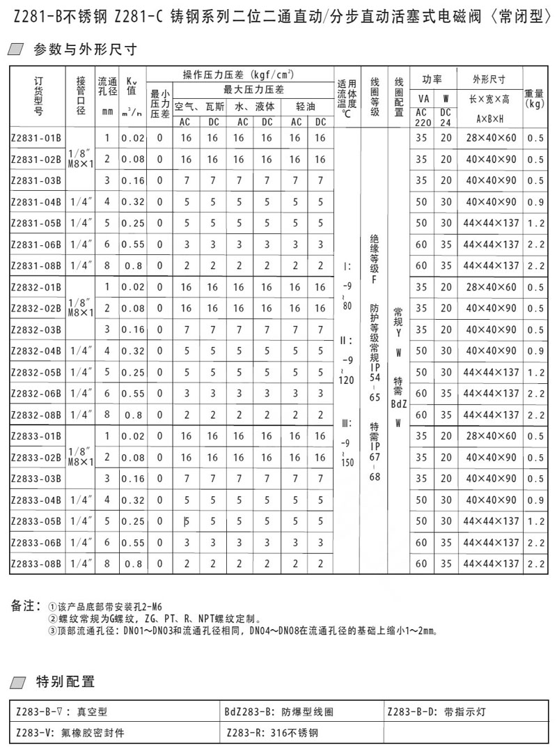 Z2831-01B,Z2831-02B,Z2832-03B,Z2832-04B,Z2833-05B,Z2833-06B,直動活塞式電磁閥