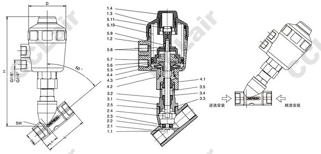 | 1.1閥體 | 3.1螺紋連接件 | 5.5活塞 |