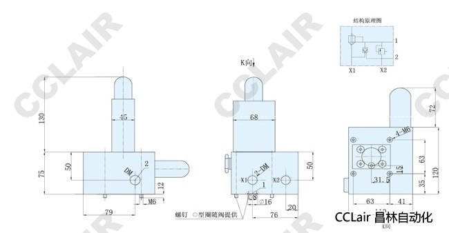 ①名稱代號(hào):補(bǔ)償調(diào)壓閥(液控) ①名稱代號(hào):節(jié)流調(diào)壓閥(液控)