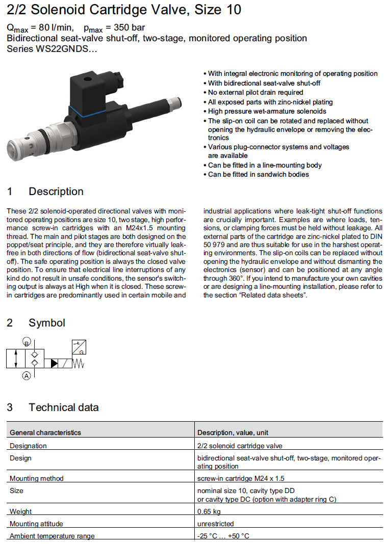 詳細(xì)信息 WS22GNDSAB-10-1,WS22GNCSAB-10-1,WS22GNDSAB-10V-1,WS22GNCSAB-10V-1,Bucher方向閥