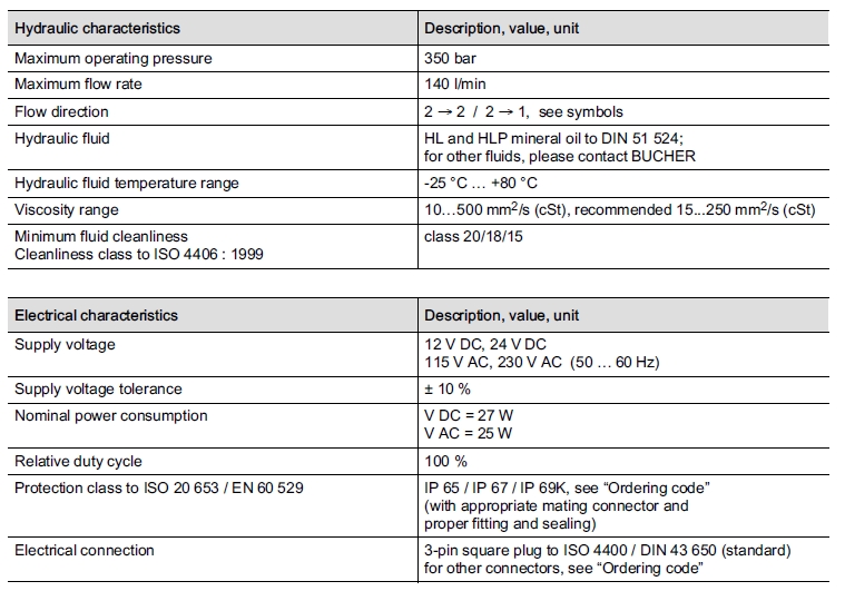 詳細(xì)信息 WS22GNHA-10-1,WS22ONHA-10-1,WS22GNHA-10V-1,WS22ONHA-10V-1,Bucher方向閥
